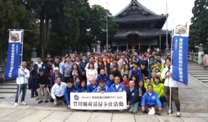 11月1日(土)に愛知県代協のCSRの取り組みとして毎年恒例の豊川稲荷の清掃活動にLIBとして参加してまいりました。昨年は残念ながら雨天により中止となってしまいましたが今年は前日の大雨が心配ではありましたが、快晴の中で気持ちよく清掃活動ができました。今回私の所属する豊橋支部は外周の清掃でしたが、たくさんの落ち葉とどんぐりを拾いました。最後は参加者全員でご祈祷をしていただき終了いたしました。